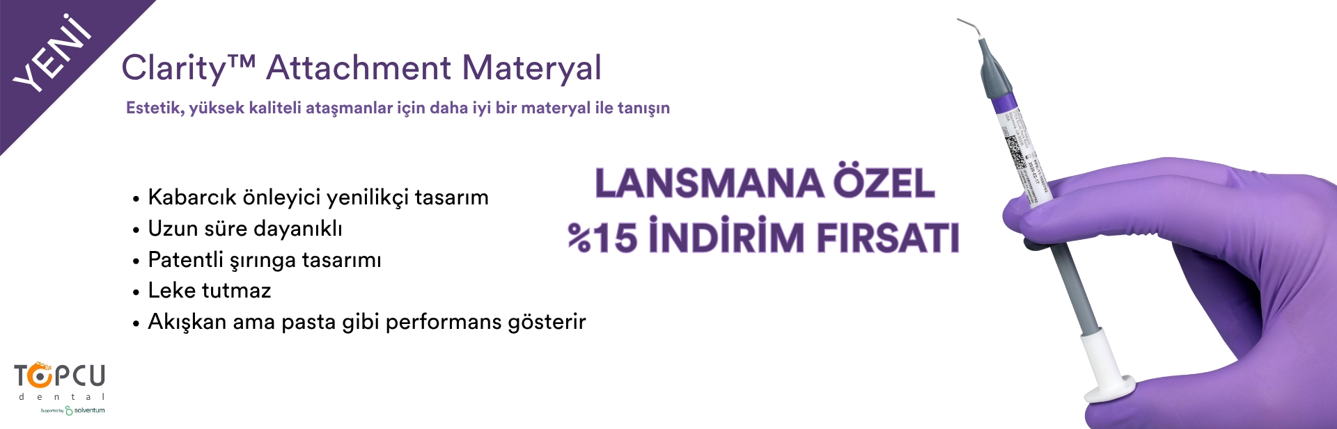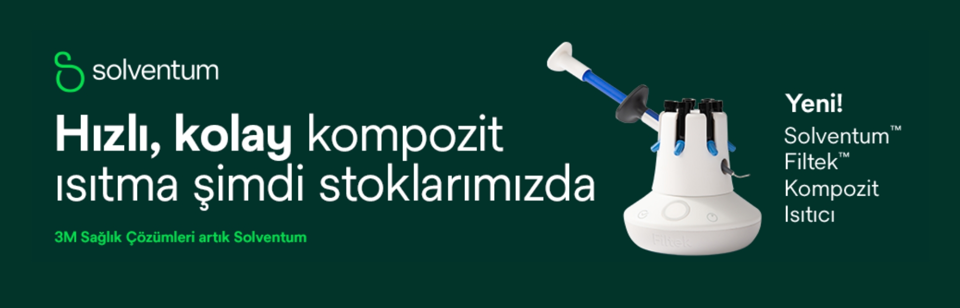 Klinik olarak kanıtlanmış dental ürünleri ve teknolojileri ile Solventum, kullanımı kolay olmakla birlikte mükemmel, uzun ömürlü sonuçlar sunmak için titizlikle formüle edilmiş Filtek™️, RelyX™️, Scotchbond™️, Clinpro™️ ve Imprint™️ gibi sınıfının en iyisi ürünler sunmaktadır.