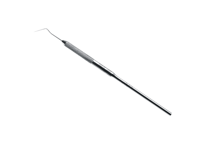 Yuvarlak saplı Figür 9 operatif eksploratör, paslanmaz çelik ucu sayesinde uzun ömürlü ve hassas kullanım sunar. Günlük klinik muayeneler için ideal bir el aletidir.